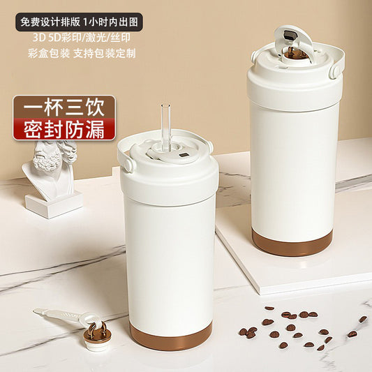 316ステンレス製サーモスカップ|セラミックライナー・持ち手付き・二層構造・ストロー付き・女性向け・500ml・ビジネスギフトに最適!