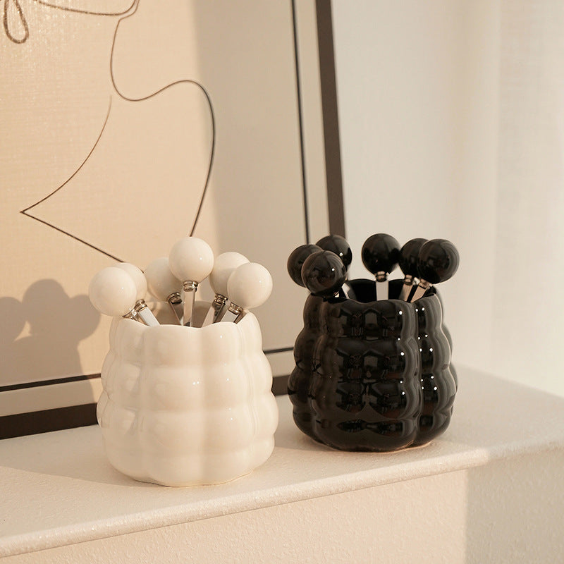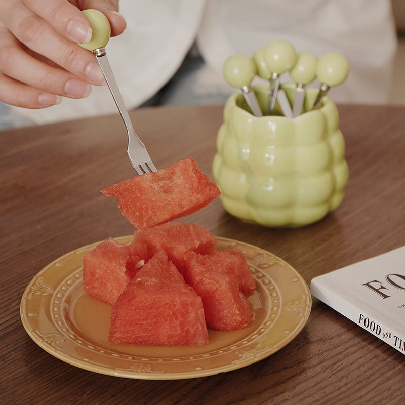セラミックパールフルーツフォークセット高価値フルーツサイン家の装飾良いコーヒーテーブル収納チューブ