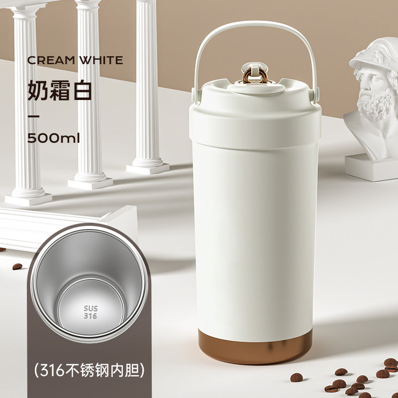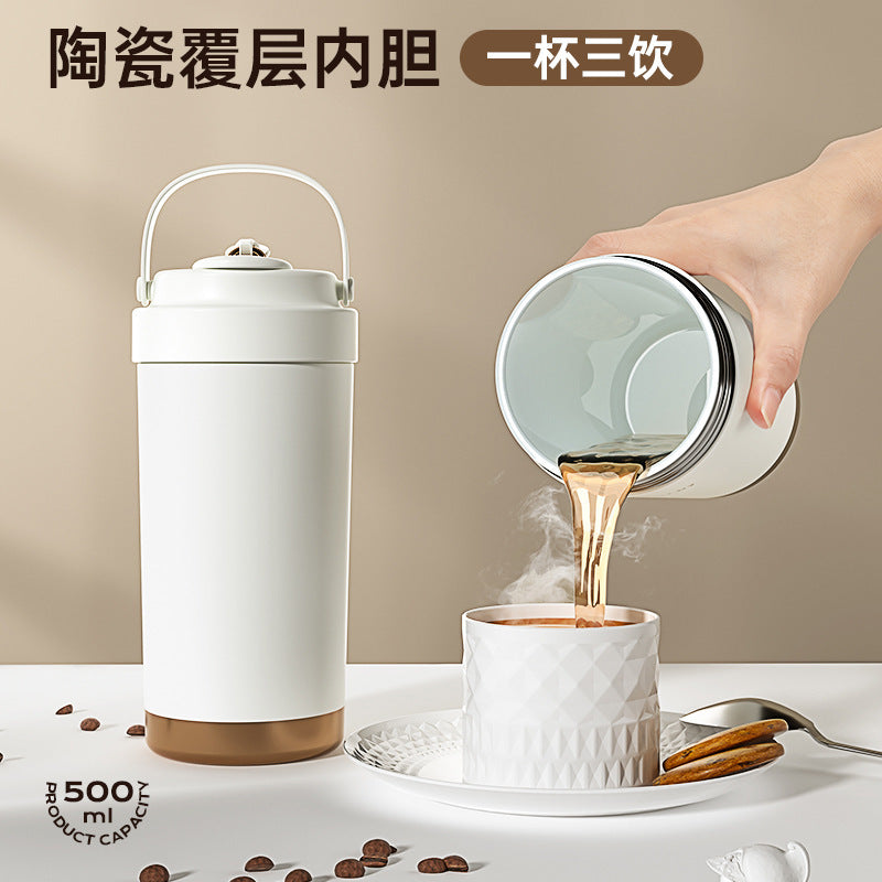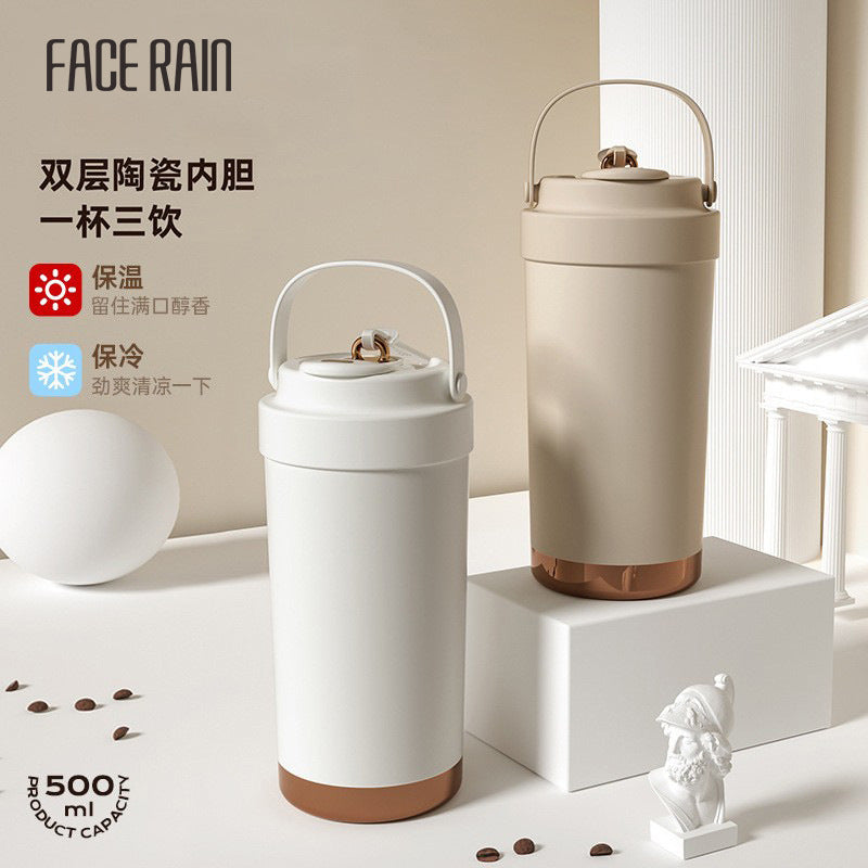 316ステンレス製サーモスカップ|セラミックライナー・持ち手付き・二層構造・ストロー付き・女性向け・500ml・ビジネスギフトに最適!